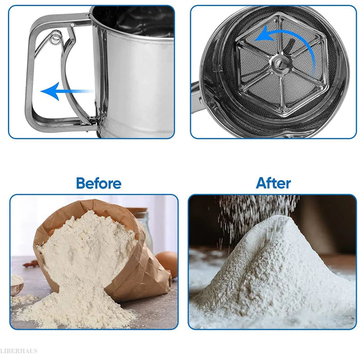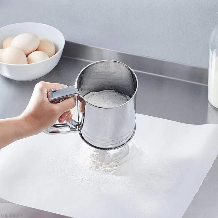 Stainless Steel Flour Sieve Cup With Hand Press Design